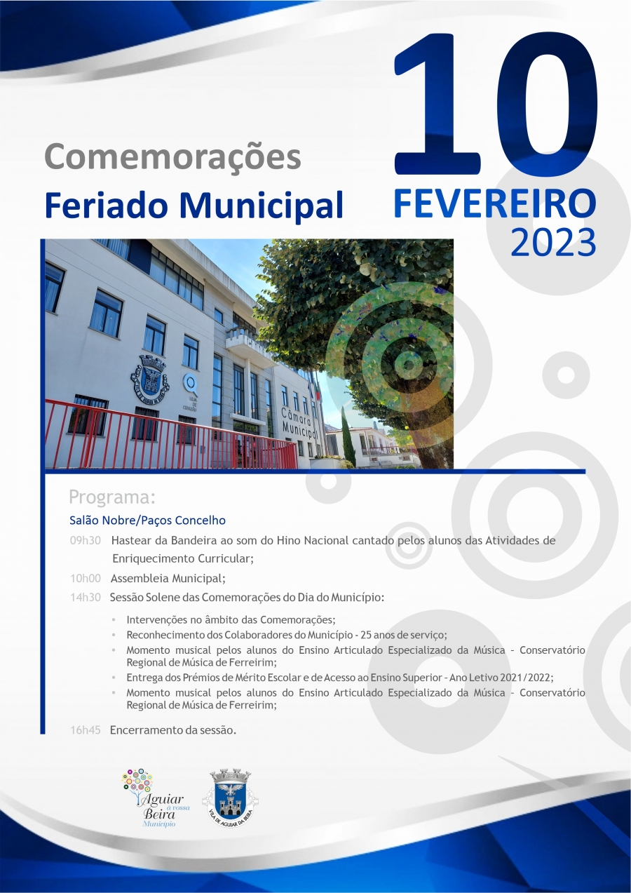 O Município de Aguiar da Beira comemora esta sexta-feira, 10 de Fevereiro, os 125 da restauração do concelho, que assinala com o Feriado Municipal. A cerimónia das comemorações será realizada no edifício dos Paços do Concelho e terá como programa: