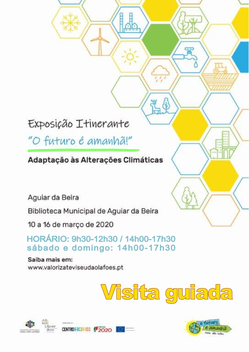 A Biblioteca Municipal de Aguiar da Beira vai receber, entre os dias 10 e 16 de Março, a exposição itinerante “O futuro é amanhã!“, que se debruça sobre o tema da adaptação às alterações climáticas. A exposição é da responsabilidade da Comunidade Intermunicipal (CIM) Viseu Dão Lafões.