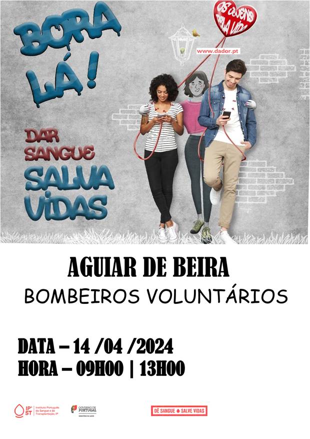 No dia 14 de Abril, entre as 09h00 e as 13h00, o quartel dos Bombeiros Voluntários de Aguiar da Beira volta a receber mais uma campanha de colheita de sangue.