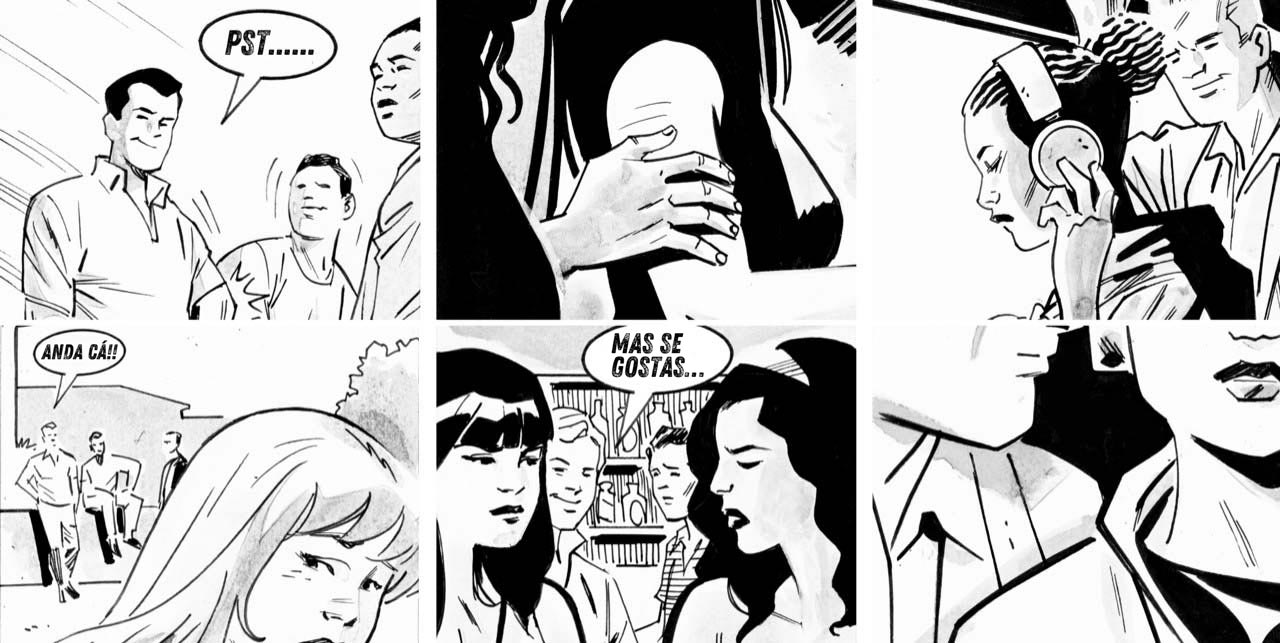 - Etapa 3 – #HistóriasdeAssédio: a partir da perspetiva paralela de vítimas e observadores, procura-se combater a indiferença e assumir a responsabilidade coletiva na criação de espaços livres de assédio sexual.