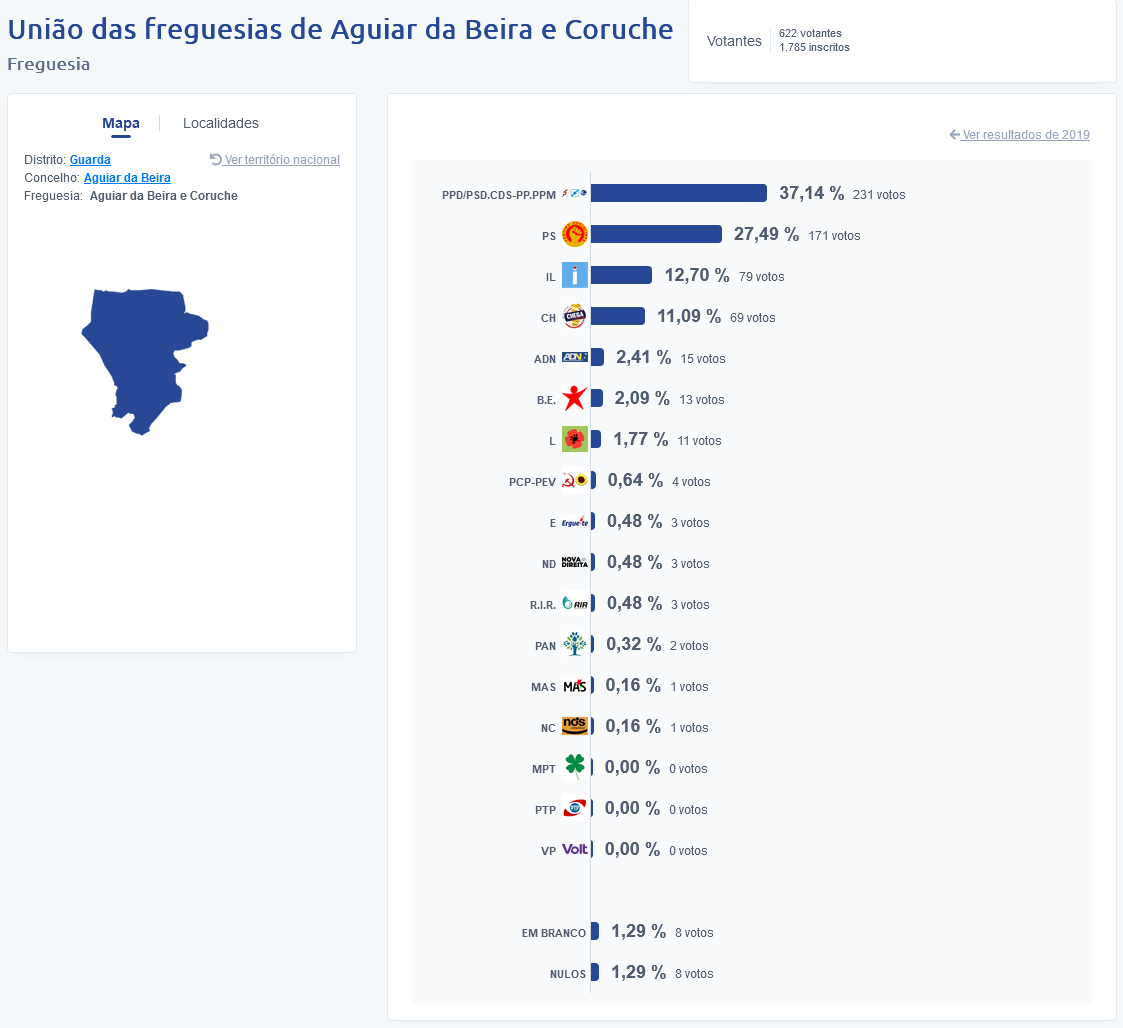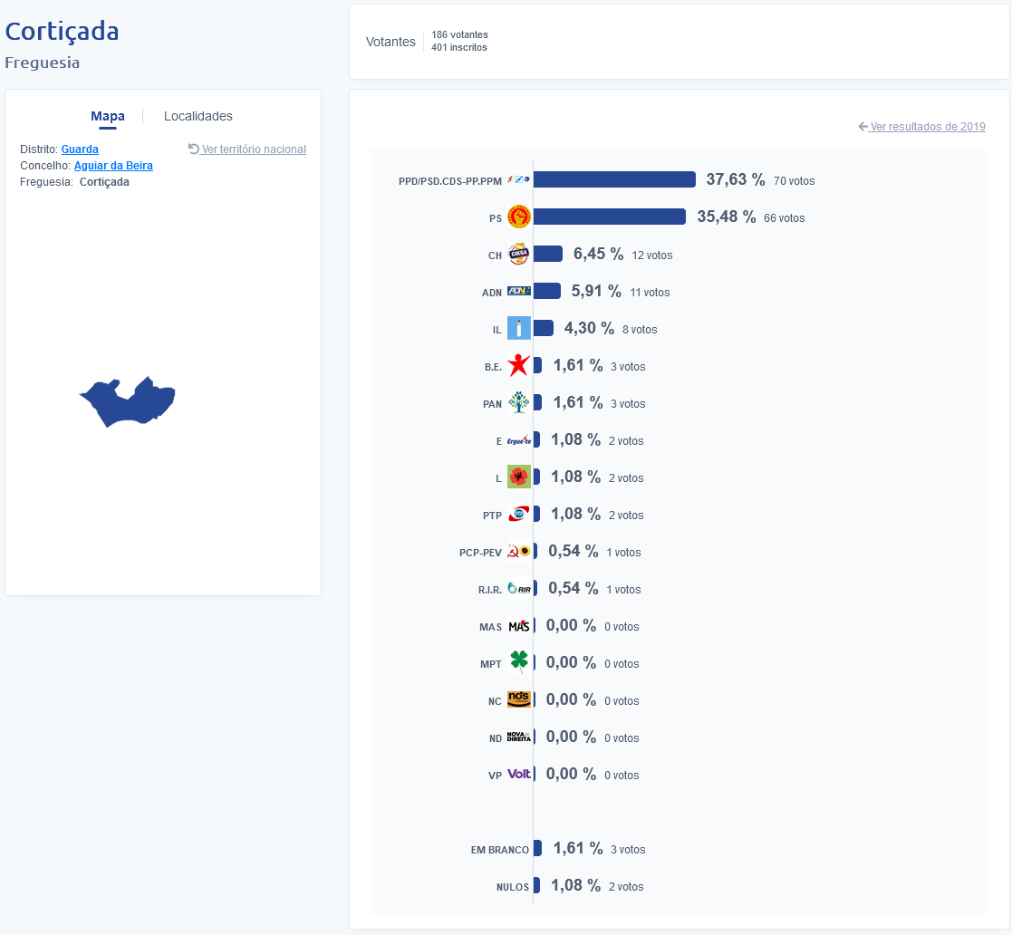 Estes foram os resultados no concelho de Aguiar da Beira: