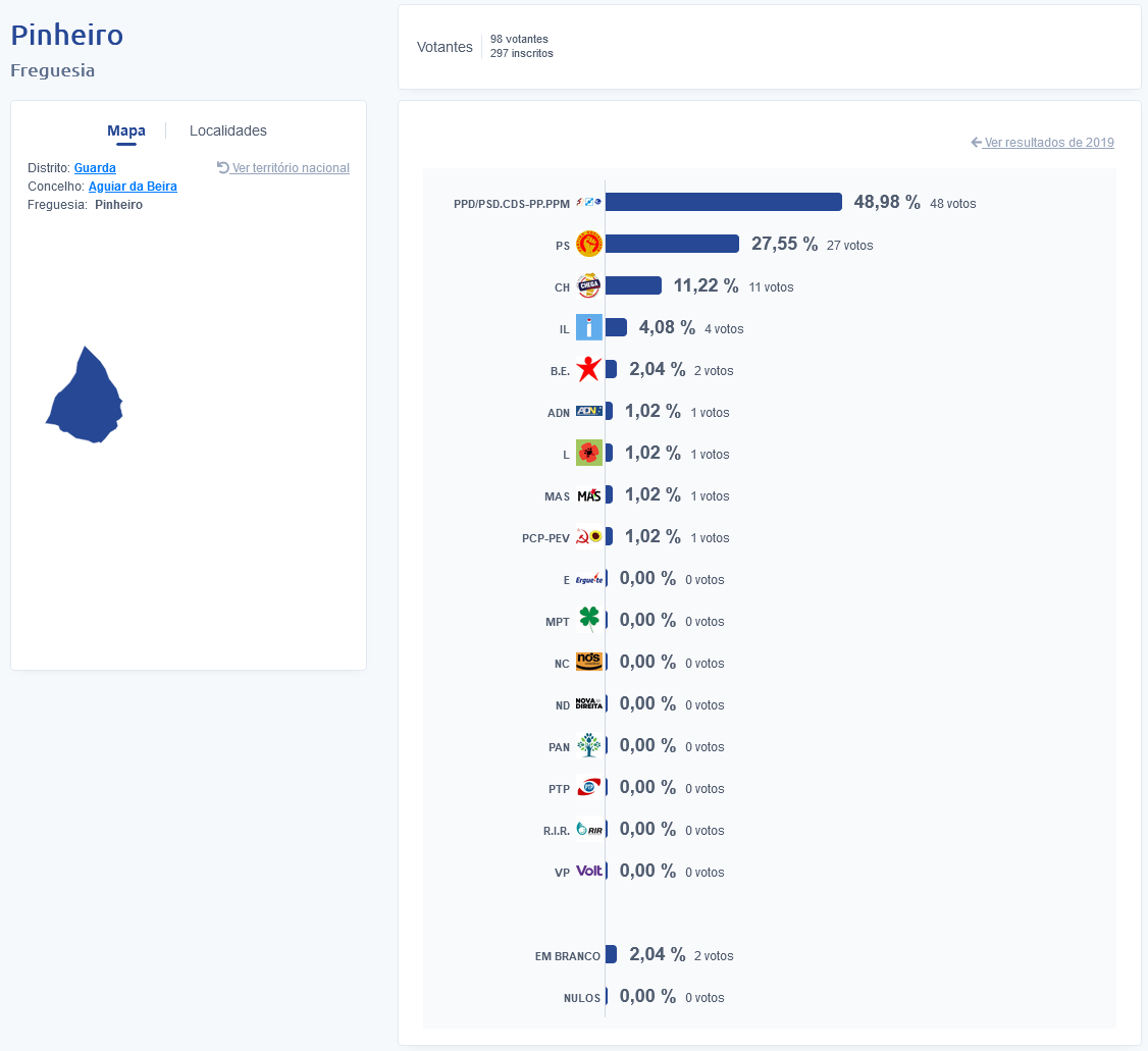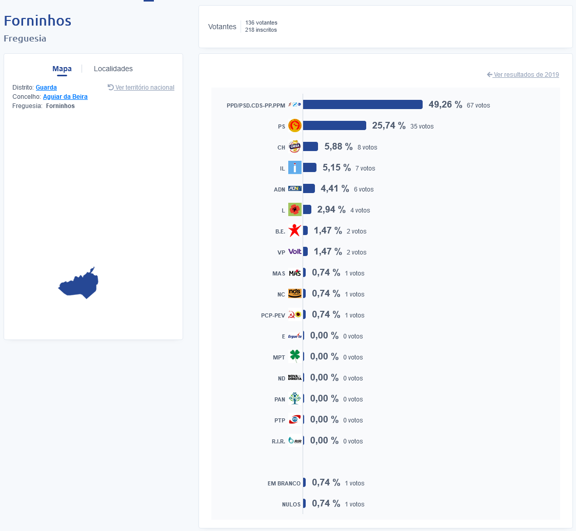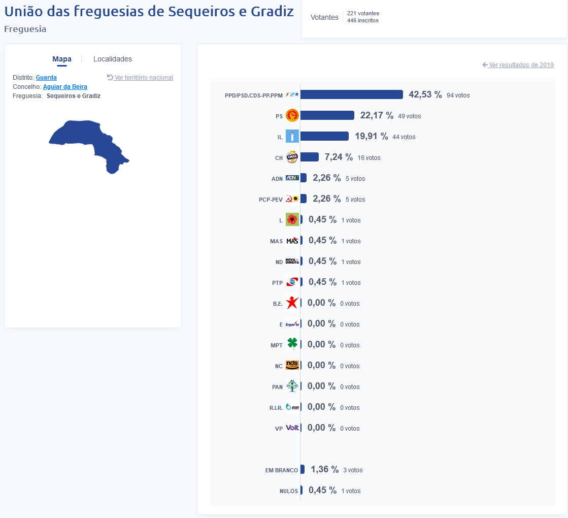 Estas foram nos resultados na Freguesia de Carapito: