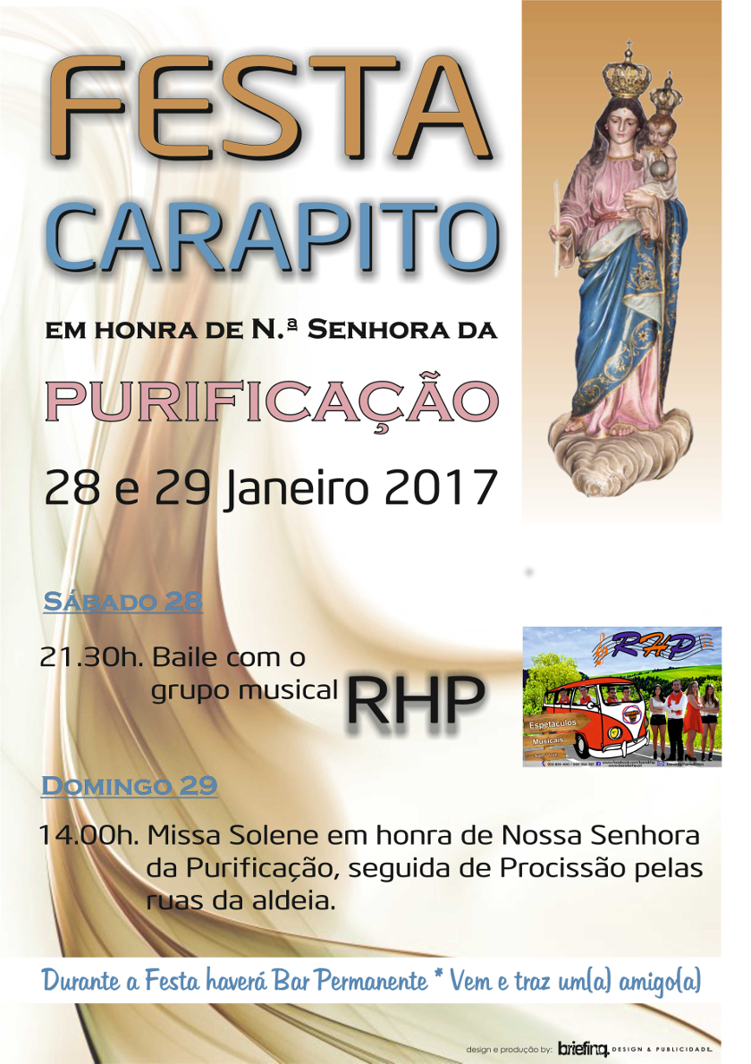 Realiza-se no próximo fim de semana de 28 e 29 de janeiro a festa em honra de Nossa Senhora da Purificação, Padroeira de Carapito.