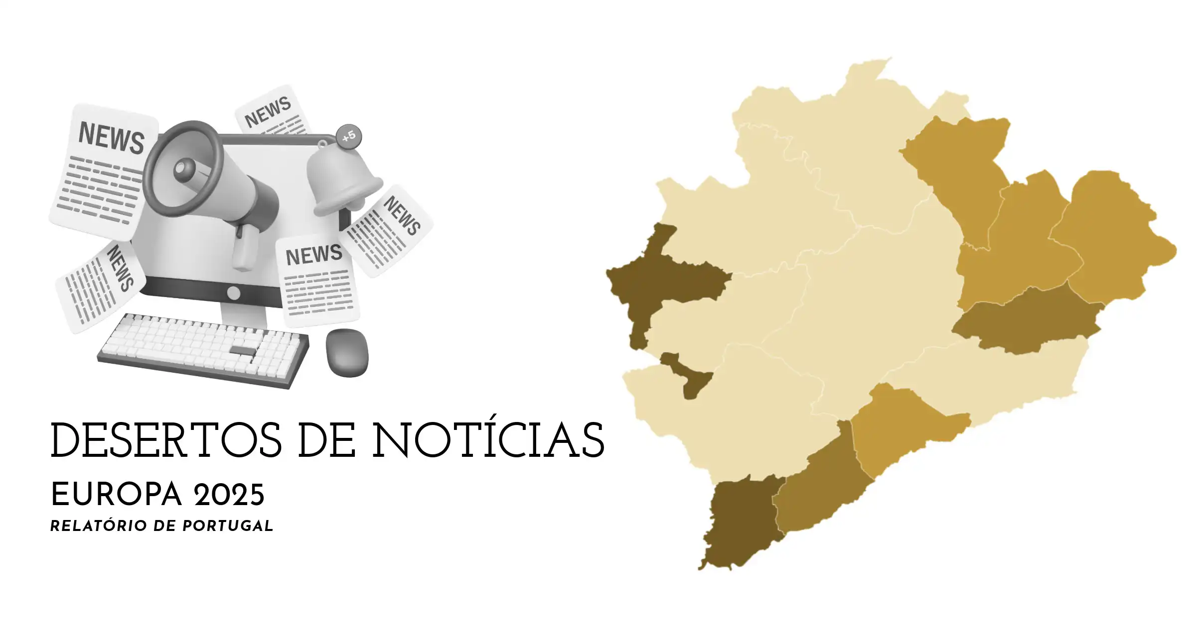 Estudo “Desertos de Notícias Europa 2025: Relatório de Portugal” confirma persistência de desigualdades territoriais, com 83 concelhos classificados como desertos ou semi-desertos (55,5%), e um crescimento acentuado dos meios digitais.