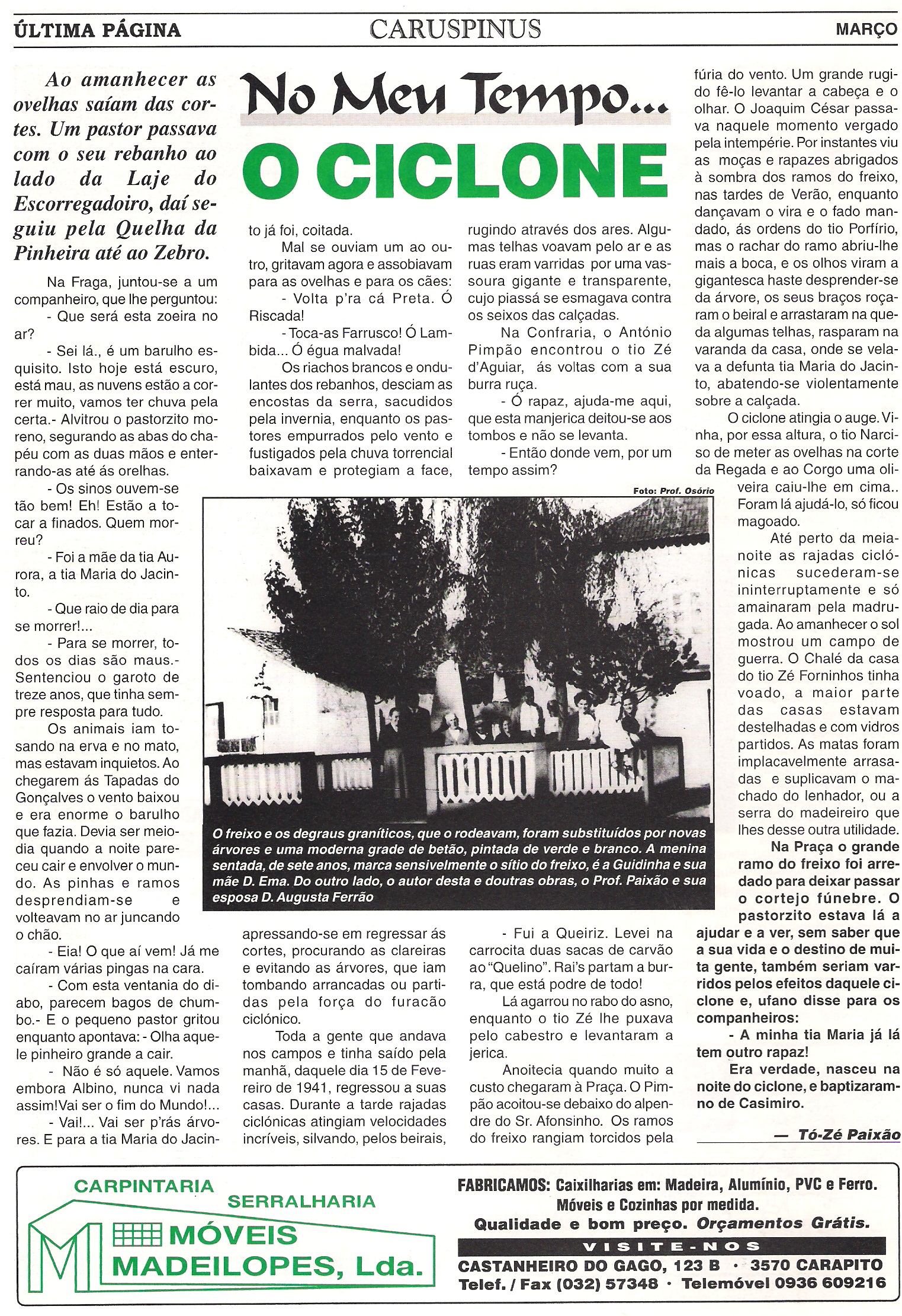 No jornal Caruspinus, n.º 127, de Março de 1998, na secção “No Meu Tempo”, Tó-Zé Paixão relata ainda algumas histórias desse dia, como a aflição de dois pastores que, na Fraga, tentavam proteger-se e juntar as ovelhas, enquanto ali perto pinheiros eram derrubados. Na Praça, um ramo do grande freixo partiu-se, tendo feito apenas estragos num beiral próximo. O tio Narciso teve menos sorte, pois caiu-lhe uma oliveira em cima, no Corgo, tendo, no entanto, escapado com apenas algumas mazelas.