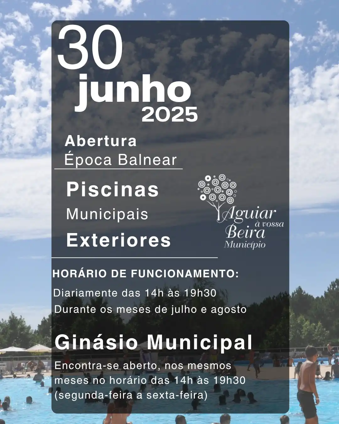 As Piscinas Municipais Exteriores de Aguiar da Beira reabrem a 30 de junho. As piscinas estatão abertas diariamente, entre as 14h00 e as 19h00.